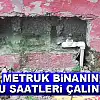 Su saatleri çalınan metruk binanın sahibi tarafından yıkılacağı öğrenildi.