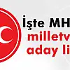 Milliyetçi Hareket Partisi'nin 1 Kasım 2015 milletvekili genel seçimleri aday listesi belli oldu. MHP, aday listesini saat 11.00'de Yüksek Seçim Kurulu'na teslim edecek. MHP'nin aday listesi şöyle: