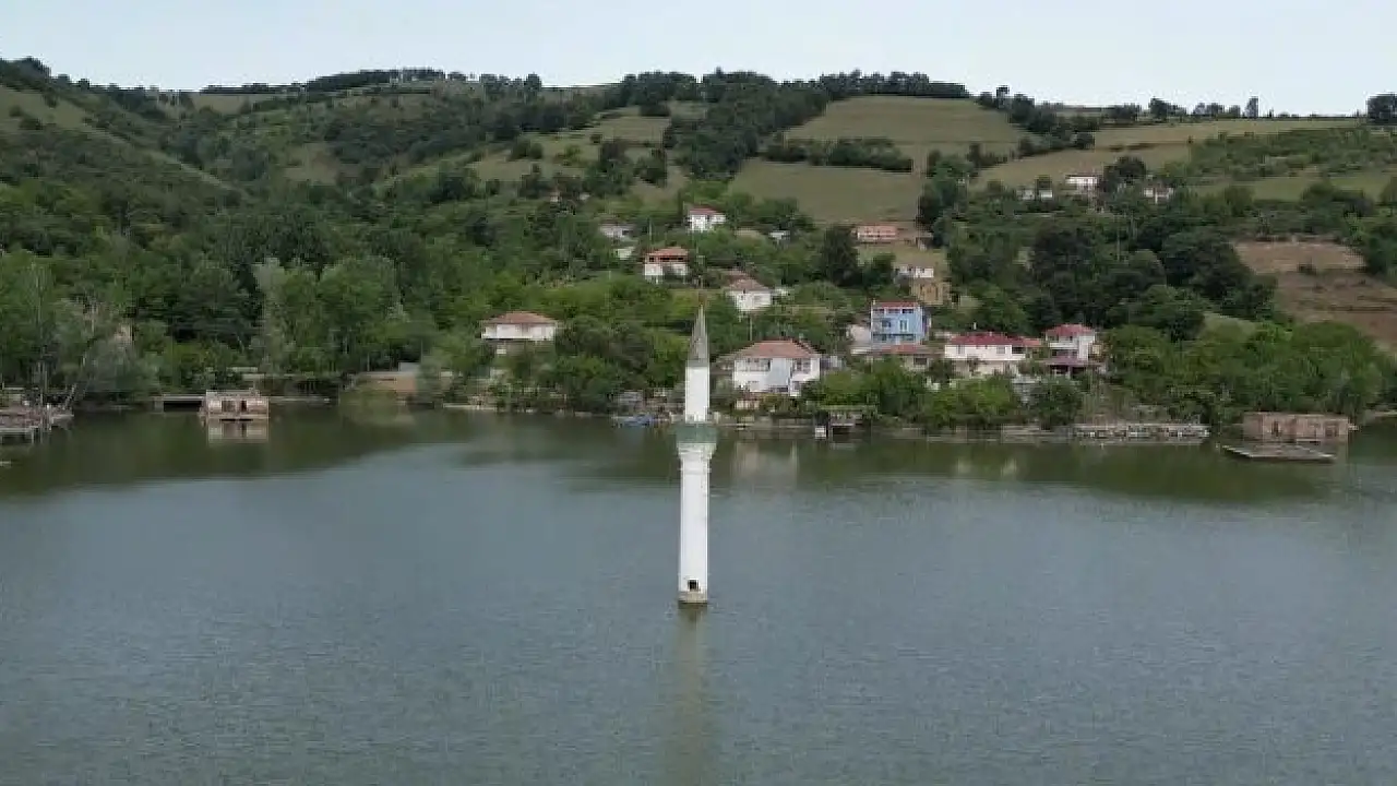 200 tane yapı arasında tek su üstünde kalan minare dikkat çekiyor