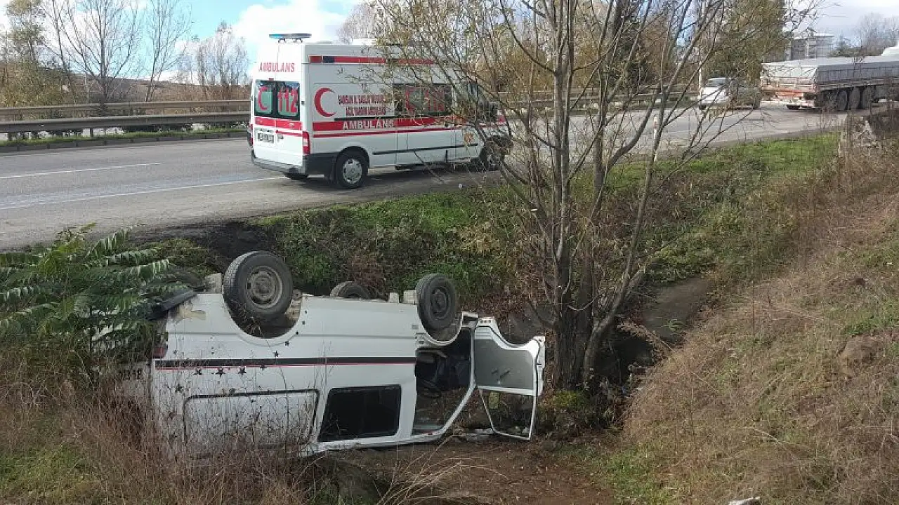 Samsun'da tırın sıkıştırması sonucu yoldan çıkarak şarampole yuvarlanıp ters dönen minibüsün sürücüsü yaralandı