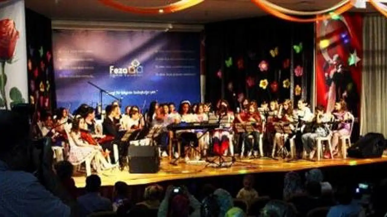 Feza Koleji Konferans Salonu'nda gerçekleştirilen programda kırk kişilik keman korosu dinleyenleri adeta büyüledi. Feza Keman Korosu; “Yine Bir Gülnihal, Hatırla ey Peri, Buruk Acı, Samanyolu, Çok Uzaklarda, Sev Kardeşim” adlı eserleri yorumladı. Ayrıca Romance ve 9. Senfoniyi de repertuarlarına ekleyen minik yetenekler ailelerinden tam not aldı.