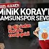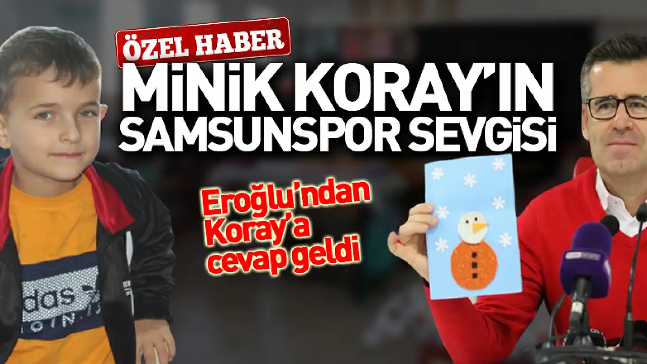 Çarşamba Mehmet Akif Ersoy İlkokulunda okuyan birinci sınıf öğrencisi Koray Uzun’un yılbaşı mesajı içeren notunu okuyan Samsunspor Teknik Direktörü Hüseyin Eroğlu’nun eline ulaşan mektup sonrası Mini Koray’a teşekkür etti. İzleyenlerin de okuyanların da yüzünde tebessüm oluşturan notun sahibi Koray ise, Samsunspor Teknik Direktörü’nün mektubu okumasına çok sevindiğini anlattı.Büyüyünce futbolcu olmak istediğini söyleyen Koray, Samsunspor’u çok sevdiğini de ekledi. Öğretmen ve okul yönetiminin de mektubun böyle bir duruma vesile olmasından mutluluk duyduklarını açıkladı.