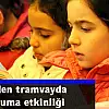 Samsun'da ilkokul öğrencileri, 'Oku, Anla, Yaşa' projesi kapsamında tramvayda kitap etkinliği düzenledi.