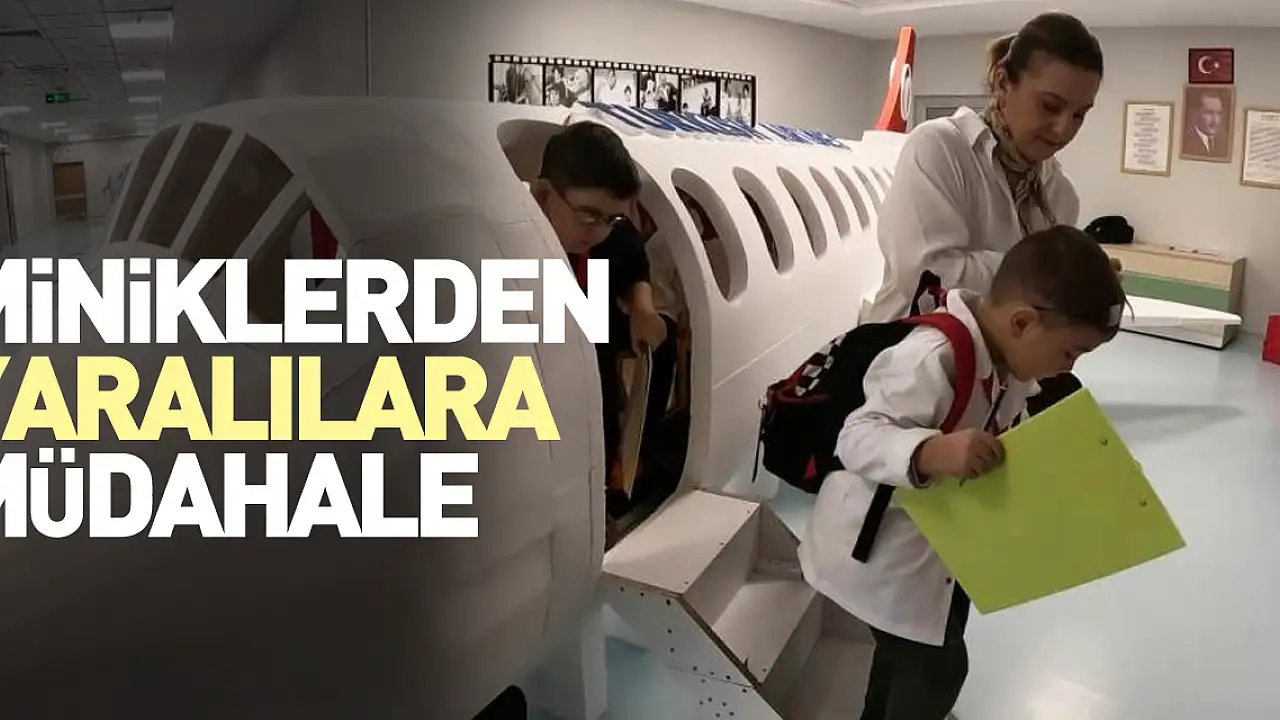 Samsun Eğitim ve Araştırma Hastanesi'nde yalıtım malzemesinden el işçiliği ile yapılan dev maket uçakla minik öğrenciler deprem tatbikatı yaptı. Doktor ve hemşire kıyafetleri giyen öğrenciler, senaryo gereği uçakla deprem bölgesine hızlıca giderek yaralılara müdahale etti.