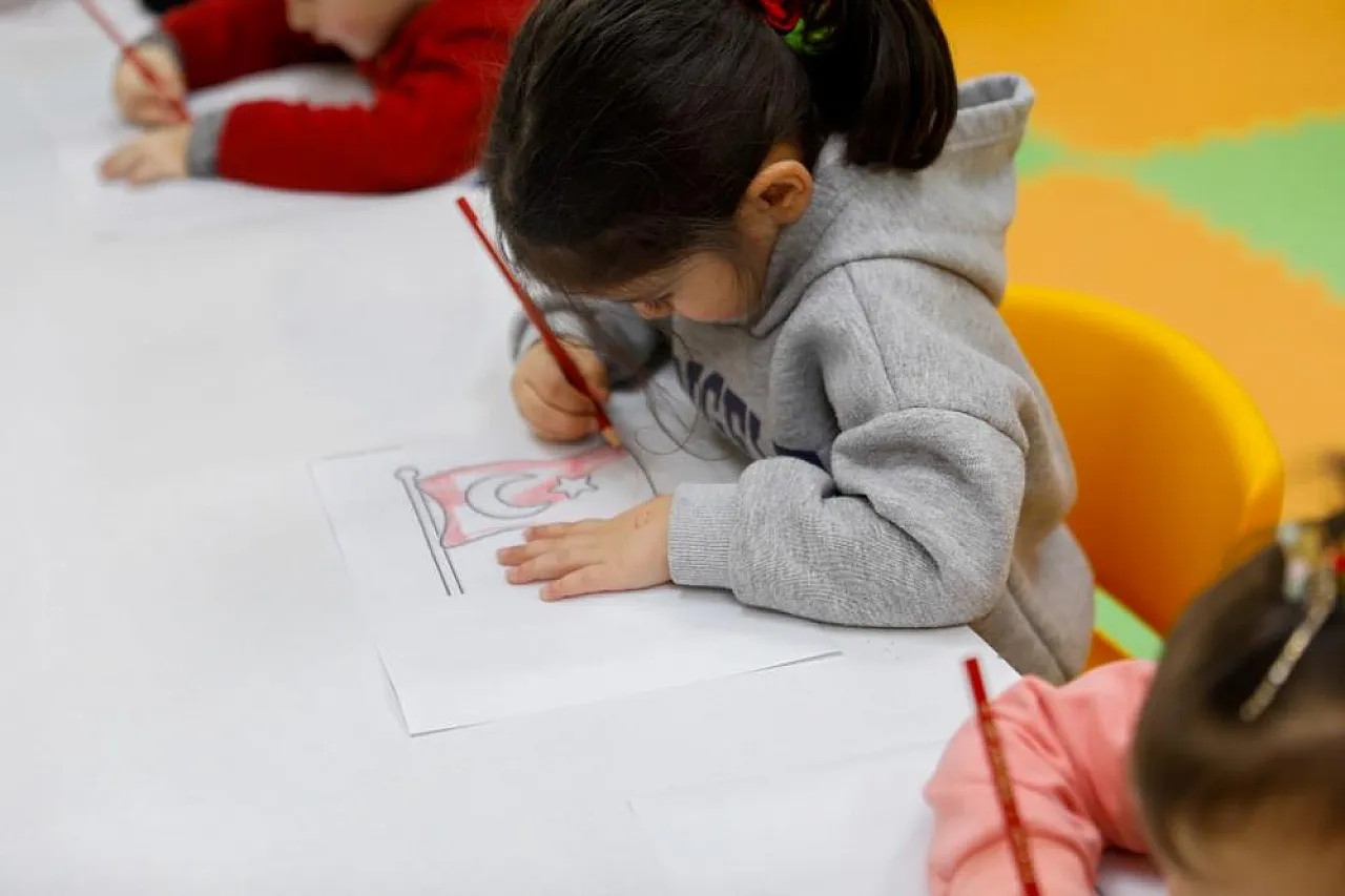 İlkadım belediyesine ait kreşlerde minik öğrenciler bayrağa olan sevgililerini gösterdiler.