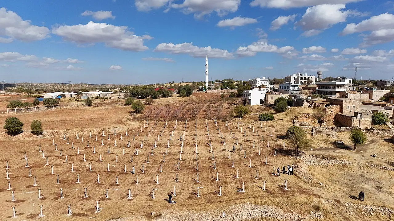 Mardin'in Ömerli ilçesinde atıl durumdaki tarım arazileri, modern bağcılık projesiyle hayat buluyor.