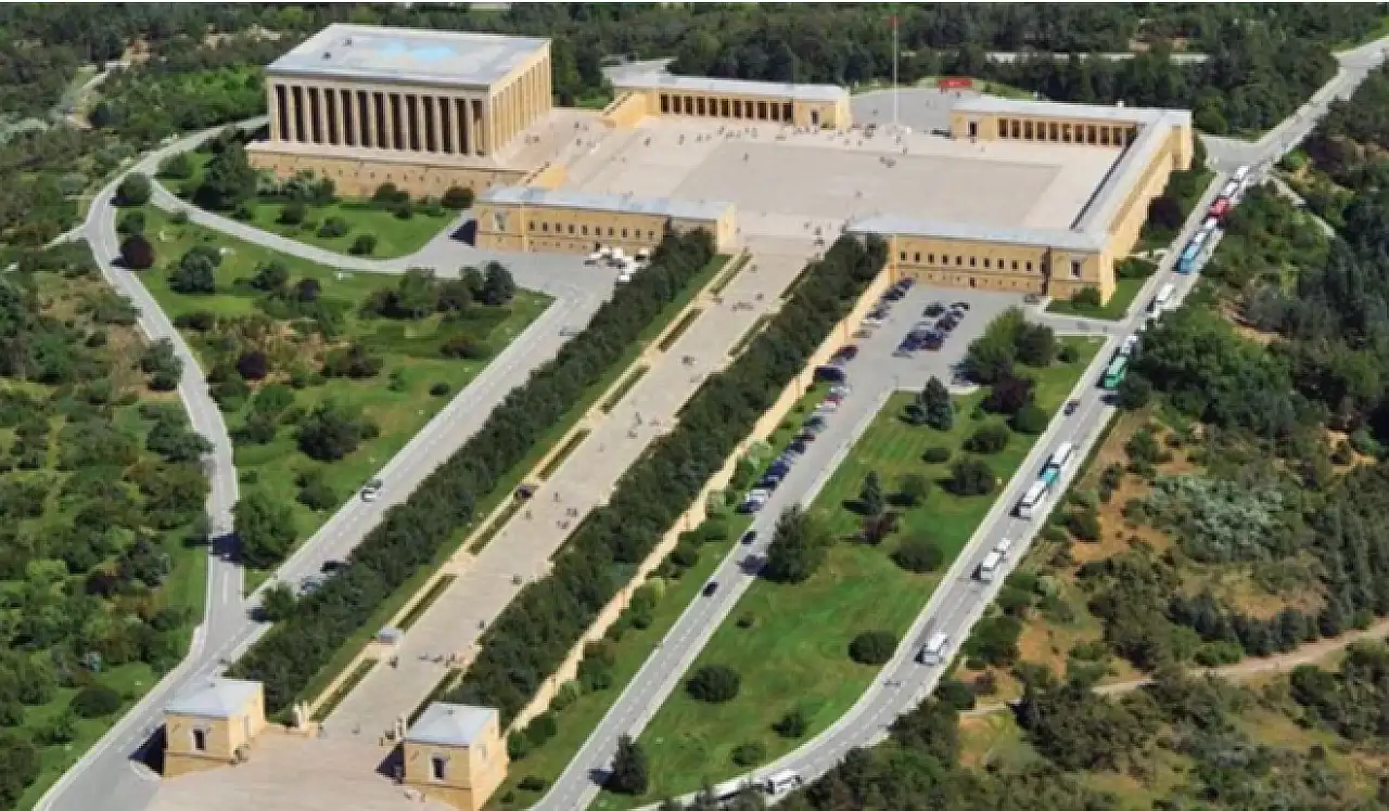 Rasattepe’de 750 bin metrekarelik bir alan üzerine kurulan Anıtkabir; Aslanlı Yol, tören meydanı, mozole ve 10 kuleden oluşuyor. Yaklaşık 150 bin ton ağırlığındaki yapı, 907 metre yükseklikte konumlanıyor. Mozolenin iç duvarları en seçkin mermerlerle kaplanırken tavanları ise altın varaklı İtalyan mozaikleriyle süslendi.