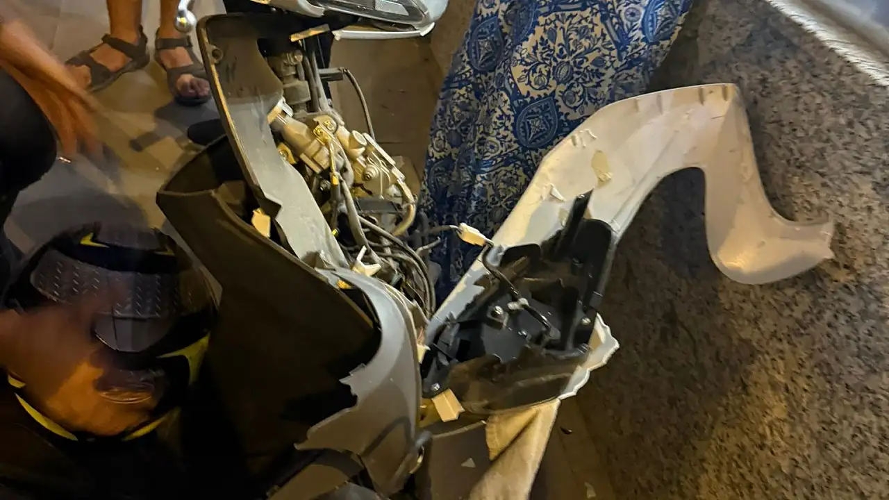 Motorlu bisiklet bir işyerinin duvarına çarptı