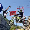 Motosikletle zipline yaptı