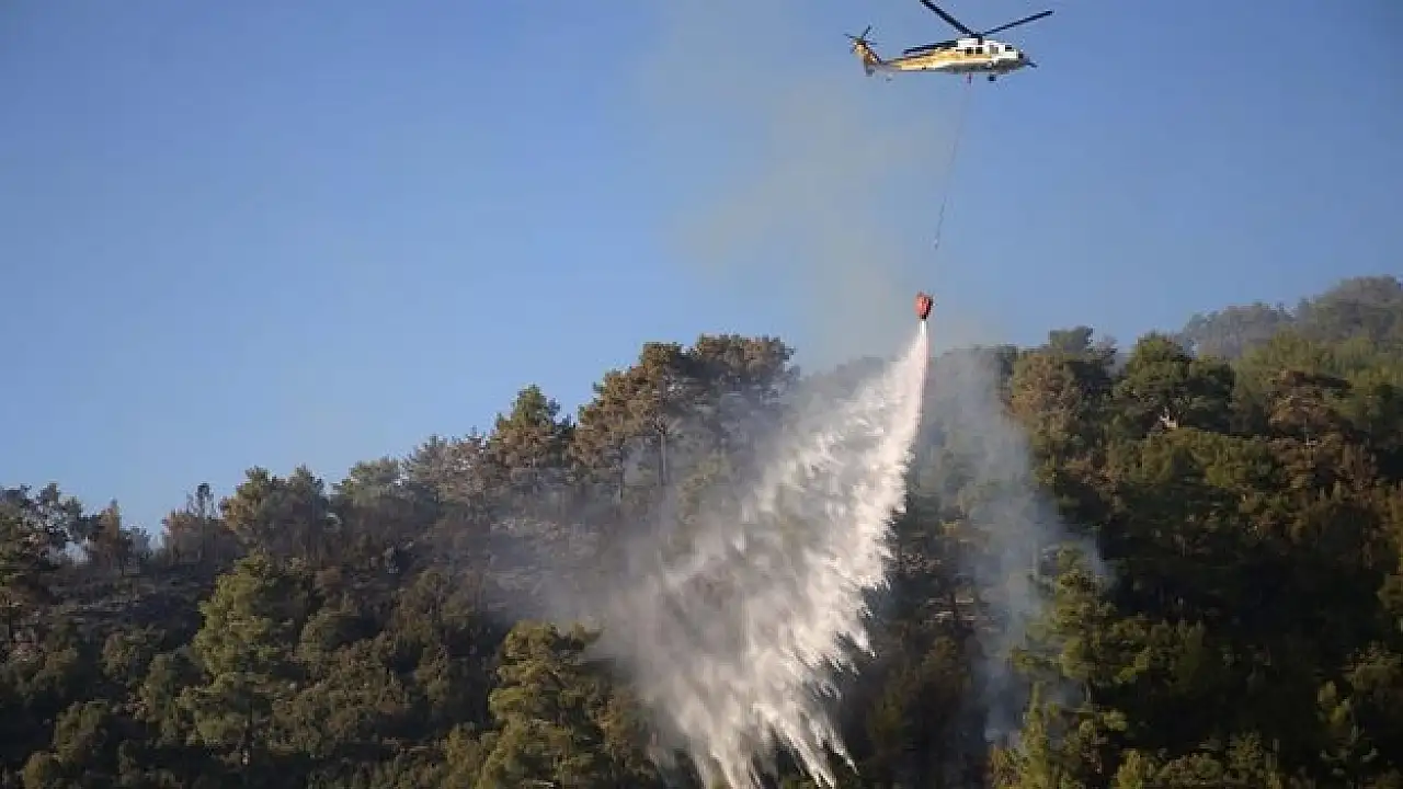 Menteşe ilçesi Turnalı Mahallesi'nde dün sabaha karşı çıkan ve rüzgarın etkisiyle genişleyen yangına gece kara ekipleri, sabahın ilk ışıklarıyla da hava ekipleri müdahale başlattı. 480 personel, 77 araç, 93 arazöz, 17 iş makinesi ve 12 hava aracı yangına müdahale ediyor. Yangınların kontrol altına alınması için civar illerden de destek ekipler geldi. Bölgede şiddetli rüzgar nedeniyle ekipler, alevleri kontrol altına almakta güçlük çekiyor. Dalaman ilçesi Taşbaşı Mahallesi'nde önceki gün akşam saatlerinde başlayan orman yangını da devam ediyor. Karadan ve havadan yangına müdahalede bulunan ekipler, çalışmalarını sürdürüyor. Şiddetli rüzgarın etkili olduğu bölgenin sakinleri de söndürme çalışmalarına destek veriyor.