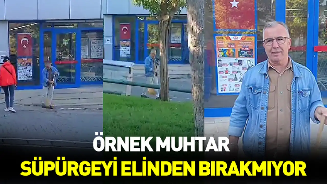 Muhtar süpürgeyi elinden bırakmıyor: Örnek davranış mahalle sakinlerini sevindirdi!