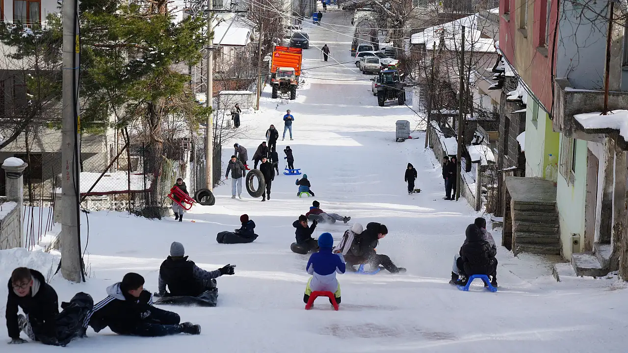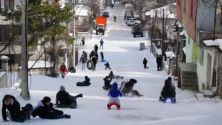 Sömestr tatilini fırsata çeviren çocuklar, kızaklarla yokuş aşağı kayarak eğlenceli anlar yaşadı. Çocukların neşeli anları cep telefonu kameralarına yansırken, mahalle sakinleri de eğlenceyi izleyerek keyifli anlara ortak oldu.