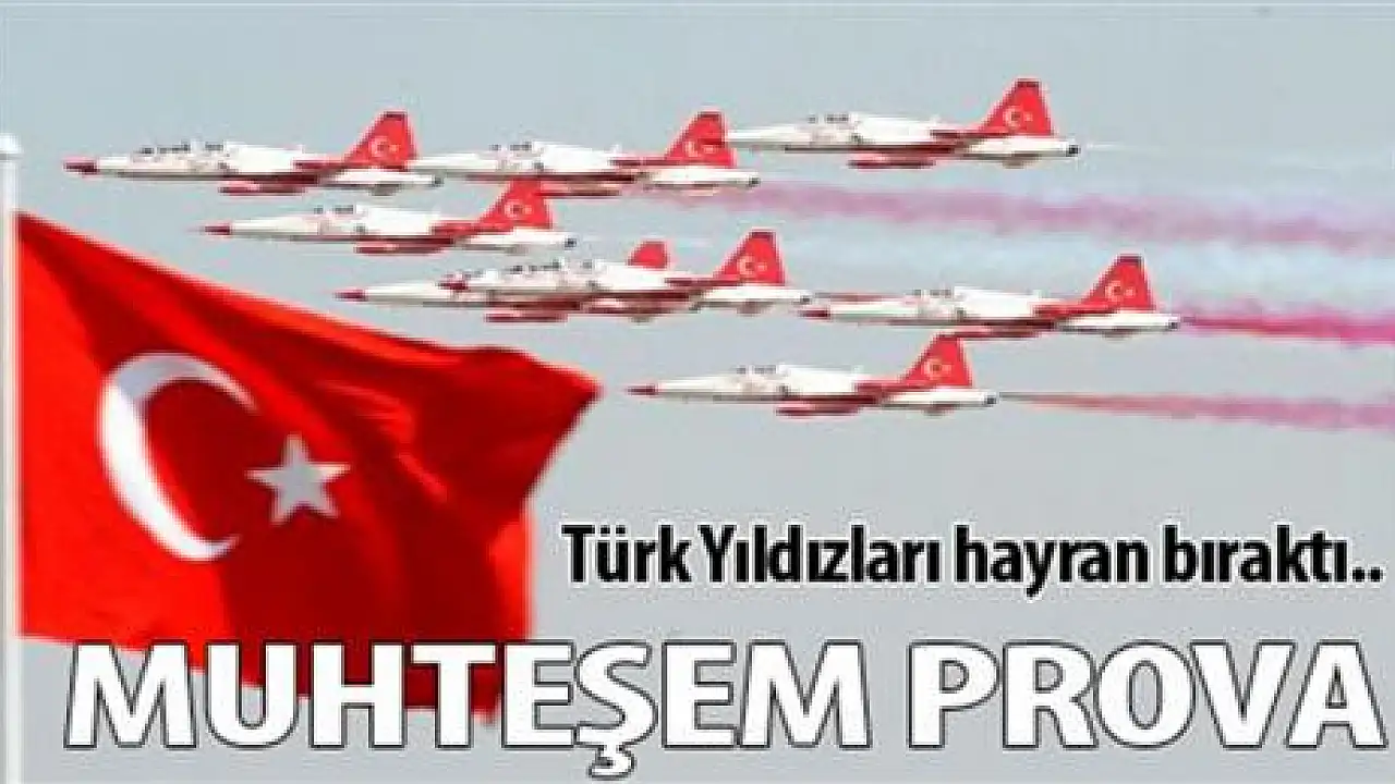Türk Hava Kuvvetleri'nin akrobasi timi Türk Yıldızları, 19 Mayıs Perşembe günü yapacakları gösteri öncesi prova yaptı. Türk Yıldızları ile F-16 Solo Türk, 19 Mayıs Atatürk'ü Anma, Gençlik ve Spor Bayramı ve Atatürk'ün Samsun'a çıkışının 92'inci yılı etkinlikleri kapsamında Perşembe günü 14.30'da Doğupark'ta vatandaşlara gösteri sunacak. Gösteri öncesi Samsun semalarında mini bir prova yapan Türk Yıldızları, vatandaşların ilgisini çekti. Uçak sesini duyan bazı vatandaşlar balkonlara çıkarak Türk Yıldızları'nın akrobatik hareketlerini izledi. Türk Yıldızları Akrotim Filosu'nun süpersonik dört F-4 jet uçağıyla yaptığı prova kısa sürdü.