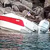 Muğla'nın Marmaris ilçesinde yasa dışı yollardan Yunan adalarına mülteci taşıdığı iddia edilen 6 metrelik sürat teknesi kuma saplanarak batma tehlikesi geçirdi