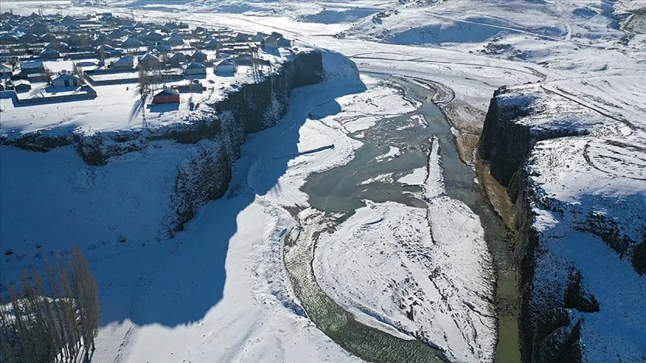 Ağrı'nın Diyadin ilçesinde doğal güzellikleriyle yılın her mevsimi doğa tutkunlarını ağırlayan Murat Kanyonu ve çevresi karla kaplandı.