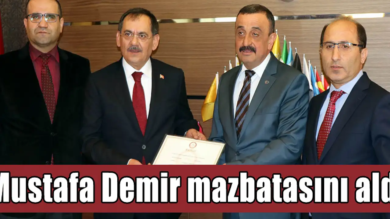 31 Mart yerel seçimlerinde Samsun Büyükşehir Belediye Başkanlığı yarışında oyların yüzde 47,37'sini alarak başkan seçilen Mustafa Demir, yapılan itirazların sonlanmasının ardından bugün mazbatasını aldı