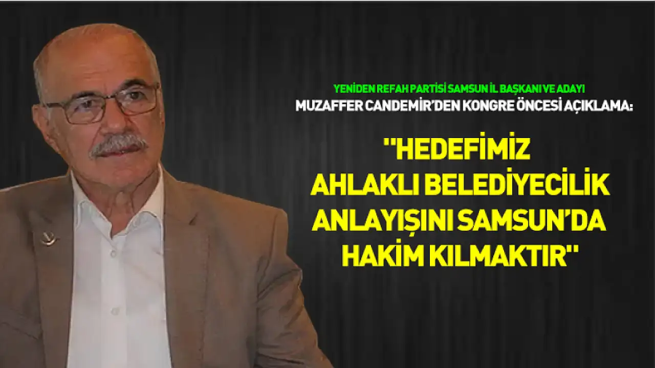 Yeniden Refah Partisi Samsun İl Başkanı ve yeni dönem başkan adayı Muzaffer Candemir, "Hedefimiz; Milli Görüş çizgisinde, ahlaklı belediyecilik anlayışını ve yerli kalkınma modelini Samsun’da hakim kılmaktır" dedi.