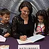 Çok heyecanlı ve mutlu olduğunu belirten Nazlı Namlı, yeni masallarının da yolda olduğu müjdesini verdi. Çocuk edebiyatına çok büyük ilgisi olduğunu belirten Yazar Nazlı Namlı, “Meyveli Çikolata Ağacı ve Ejderha benim ilk kitabım. Üçüncü baskıya çıkan masal kitabımda özellikle doğa sevgisi, arkadaşlık, dayanışma ve duygu temalarına yer verdim. Aynı zamanda İngilizce öğretmeniyim. Mesleğimden dolayı çocuklarla uzun zaman geçirdim. Onların gözünden bakabilmek ve onlara yol göstermeyi hedeflemek çok önemli. En temelinde de çocukları çok seviyorum. Tüm bu enerji akışı beni masal yazmaya yönlendirdi ve ilk olarak bu kitap ortaya çıktı. Kısacası bana ilham kaynağı oldular. Çocuklarımızın da kitabıma büyük ilgi göstermesi beni ayrıca çok mutlu etti. Bugün bunu tekrar anlamış oldum. Bu güzel duygularla da yazmaya devam ediyorum ve edeceğim. Çok yakında yeni kitaplarım da okuyucularla buluşmuş olacak. Yazdığım masallarımda çocuklarımıza anlamlı güzel bir hatıra bırakmak istiyorum. Onlara dokunabildiysem ne mutlu bana. Bugün imza günüme teşrif eden başta çocuklar olmak üzere herkese teşekkür ediyorum” dedi.