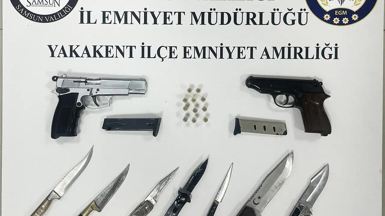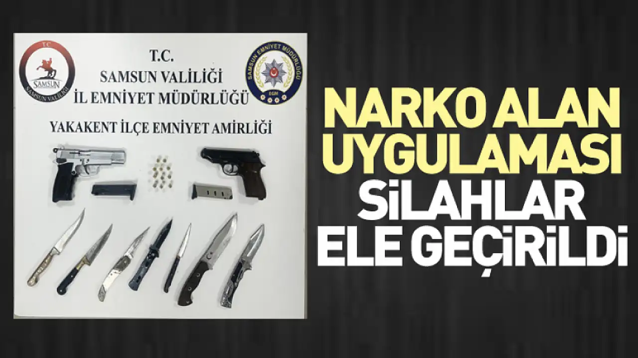 Samsun'un Yakakent ilçesinde polis ekiplerince gerçekleştirilen 'Narko Alan' uygulamasında silah ve bıçaklar ele geçirildi, çok sayıda cezai işlem uygulandı.