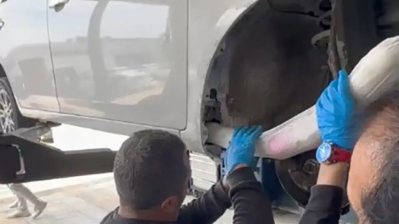 Ekiplerin narkotik köpeklerinin de yardımıyla yaptıkları çalışmalar sonucu uyuşturucu maddelerin aracın marşpiyel kısmına gizlendiği anlaşıldı. Ekiplerin aracın lastiklerini sökerek yaptıkları detaylı inceleme sonrası aracın kaportasının kesilerek bir kapak yapıldığı, uyuşturucu maddelerin burada taşındığı, burada yapılan aramalarda ise toplamda 9 kilogram metamfetamin maddesi ele geçirildi.