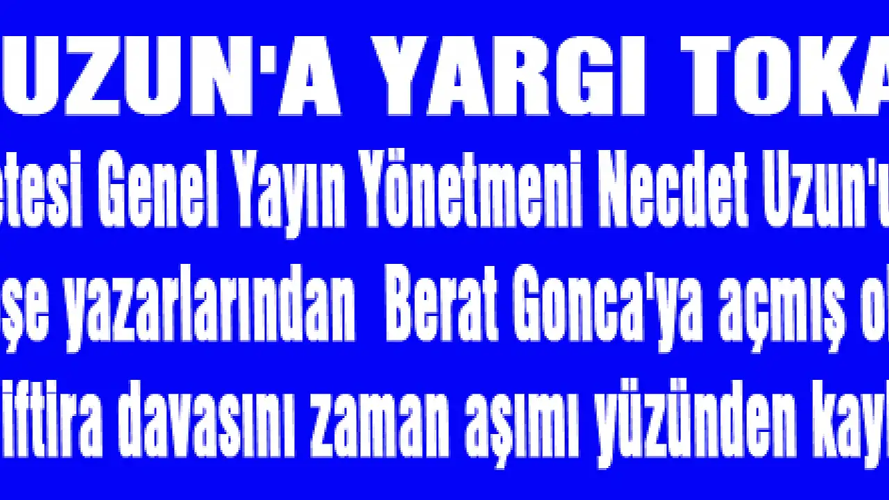 Haber Gazetesi Genel Yayın Yönetmeni Necdet Uzun'un, gazetemiz köşe yazarlarından Berat Gonca'ya açmış olduğu hakaret ve iftira davasını zaman aşımı yüzünden kaybetti