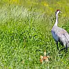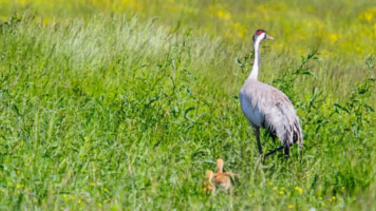 Nesli tükenme tehlikesi altında olan ve dünyada 30 çift kadar kaldığı tahmin edilen Anadolu dağ turnası (Grus grus), Samsun'un Bafra ilçesinde yer alan Kızılırmak Kuş Cenneti'nde yavrusuyla birlikte görüntülendi.
