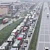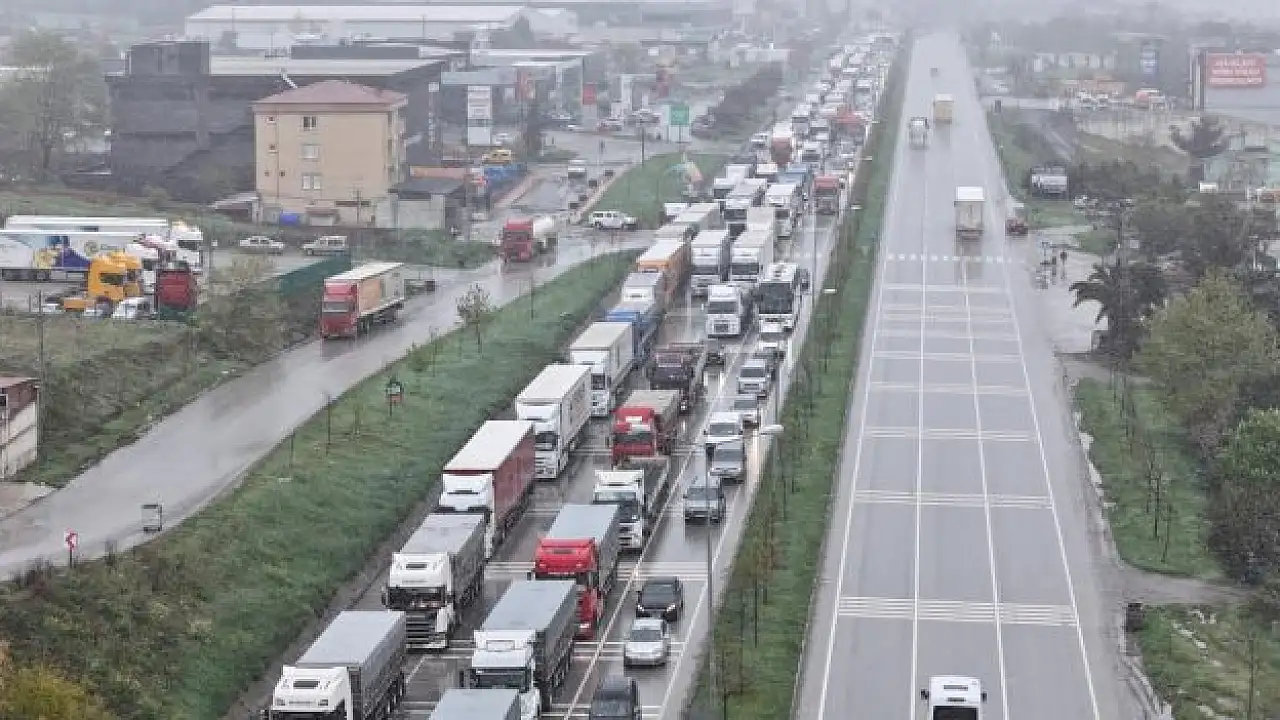 Samsun'da kar yağışından dolayı 2 kilometrelik tır kuyruğu oluştu