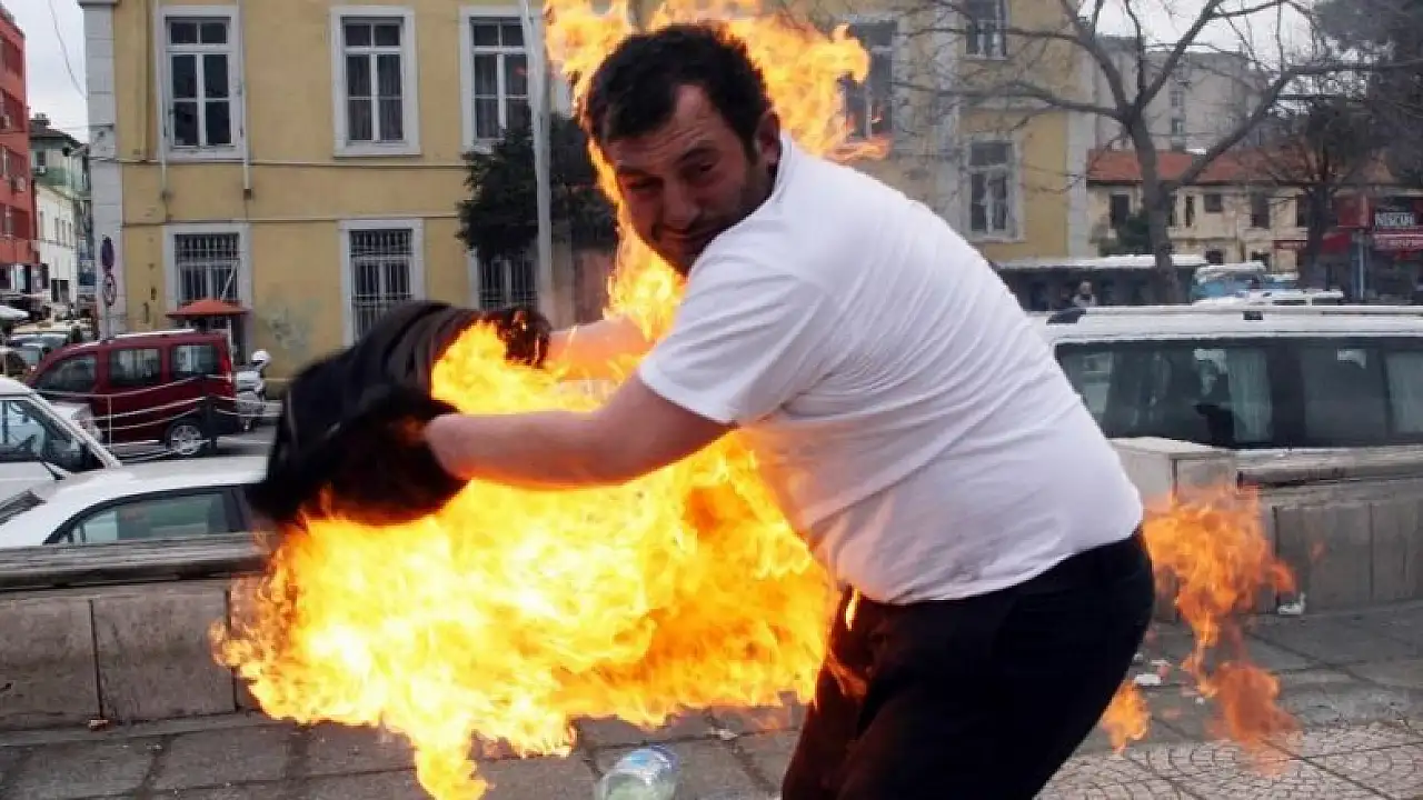 6 Şubat 2010’da meydana elinde benzin bidonuyla gelen Cemalettin Alış (39), etrafa “Beni yaktılar, dışarı çıkacak yüzüm kalmadı. 1 milyon TL dolandırıldım. Benim olmayan borçlar yüzünden icralarda sürünüyorum yardım edin" diyerek bağırdıktan sonra elindeki belgeleri gösterirken, bir anda çakmağı çakarak, alevler içerisinde kalmıştı. Montu, kazağı, atleti tutuşan Alış, etrafa koşarak üzerindekileri çıkartmaya çalışmıştı. Yanan elbiselerini çıkarmayı başaran Alış’ın yüzünde ve vücudunda ciddi yanıklar oluşmuştu. Benzin bidonunu tekrar eline alan Alış, kendini bir daha yakmakla tehdit ederken, bir anda kendinden geçerek yere düşmüştü. O dehşet anları ise İhlas Haber Ajansı’na(İHA) objektiflerine yansımıştı.