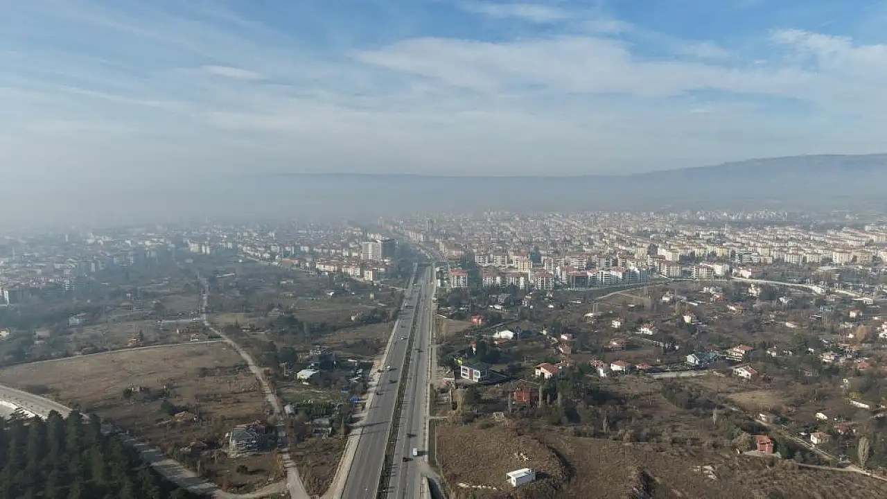 Çorum'da kent merkezini kaplayan sis havadan görüntülendi.