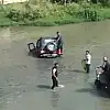Amasya'da gösteri amacıyla Yeşilırmak'a giren arazi araçları mahsur kaldı.