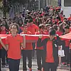 Erzurum'da ilköğretim öğrencileri 2015-2016 eğitim öğretim yılının ilk dersini 'Vatan ve Şahadet' adı altında düzenlenen bayrak yürüyüşüyle Tabyalar'da yaptı.