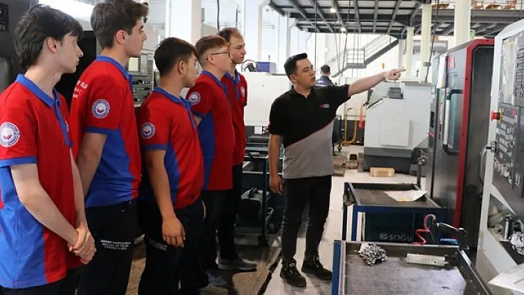 Fabrikada açılan meslek lisesinin öğrencileri, uygulamalı eğitim görüyor