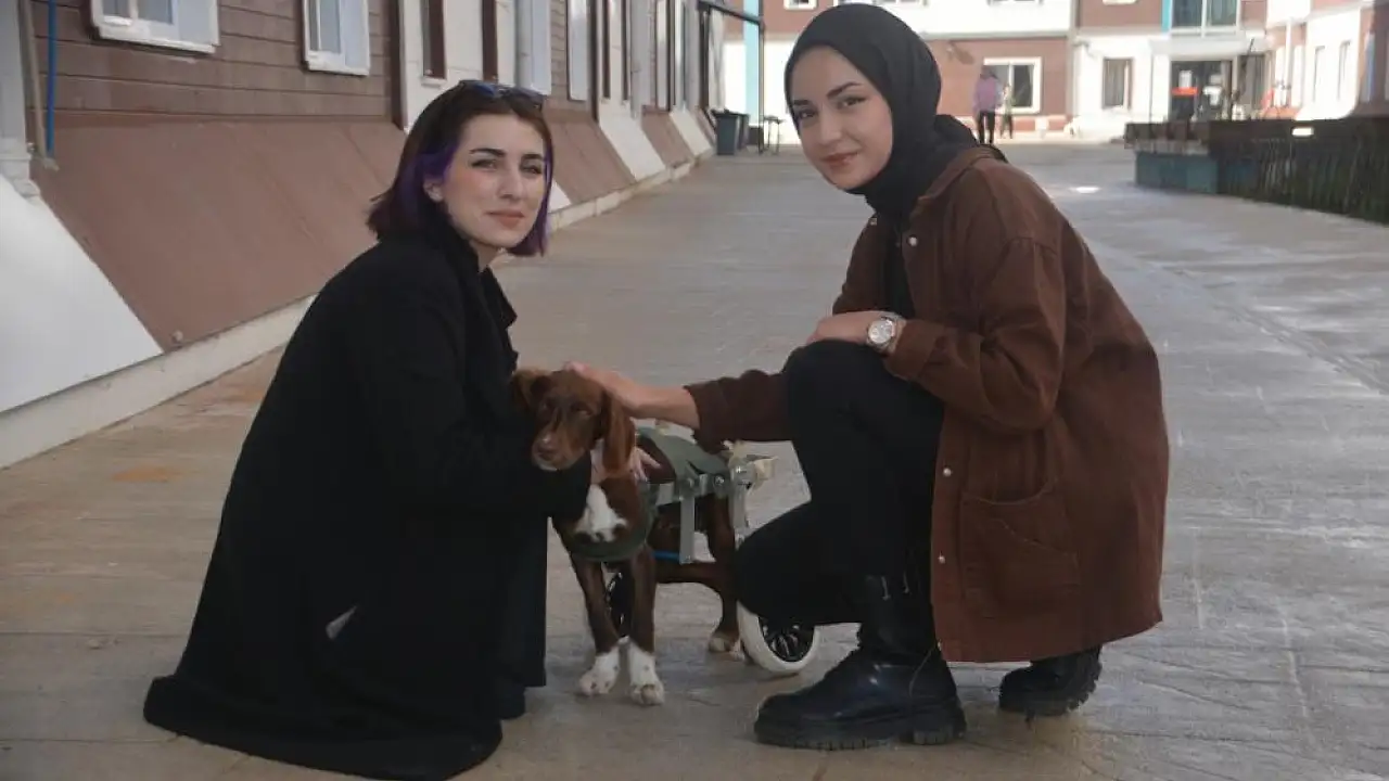 Sinop Seyyid İbrahim Bilal KYK yurdu bahçesinde bulunan 'Şanslı' isimli köpek üniversite öğrencilerinin ilgi odağı oldu. Şanslı, öğrencilerin sayesinde beline takılan tekerlekli yürüteç ile yürüyebiliyor.