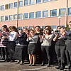 Fakülte binası girişinde toplanan yaklaşık 200 Almanca ve Fransızca bölümü öğrencisi, atanamama problemini alkışlarla protesto etti. Öğrenciler adına konuşan eğitim fakültesi Fransızca bölümü 4. sınıf öğrencisi Taner Ganık, protesto gösterisiyle yıllardır mahrum kaldıkları atama haklarını lehlerine çevirmeyi amaçladıklarını söyledi. Her yıl bölümlerine giriş kontenjanının artırıldığını, puanların geri çekildiğini hatırlatan Ganık, "Bütün bunlar, yıllardır sarf ettiğimiz maddi manevi çabaların boşa gittiği anlamına gelmektedir. Bütün öğretmen adaylarının yakındığı KPSS var. Bu sınavdan 100 üzerinden 100 alsak dahi, sonuç alamamanın cevabını bize kim verecek. Bizler, karanlıkta kaybolan meçhul öğretmenler olmak istemiyoruz. Güneş bizim için ne zaman doğacak?" dedi.