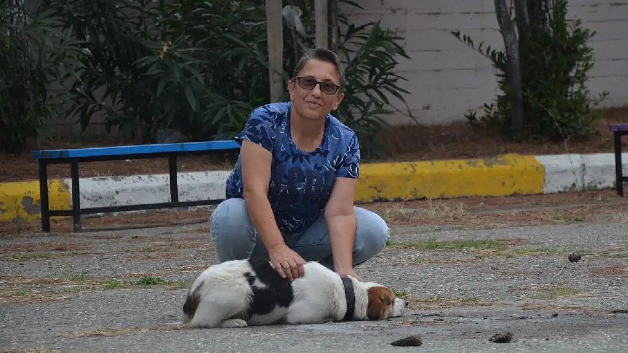 Samsun Bafra Mesleki ve Teknik Anadolu Lisesi Müdür Yardımcısı Emine Kadıoğlu Uluçay, sokak hayvanları için plastik atık topluyor.