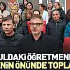 Okuldaki öğretmenler lisenin önünde toplandı