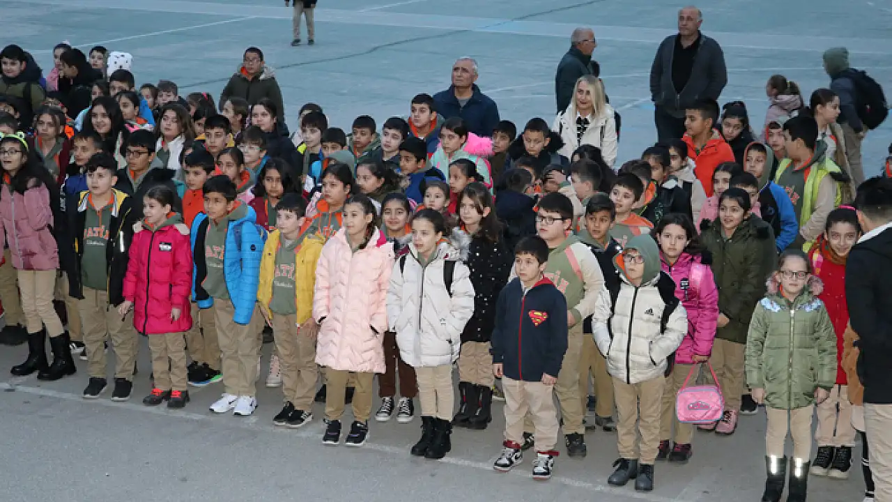 Sabah erken saatlerde okullara giden öğrenciler, İstiklal Marşı'nın okunmasıyla sınıflara alındı.