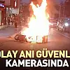 Samsun'da seyir halindeyken alev alev yanan motosikletten sürücü kaçarak kurtulurken, o anlar anbean kameralara yansıdı.