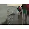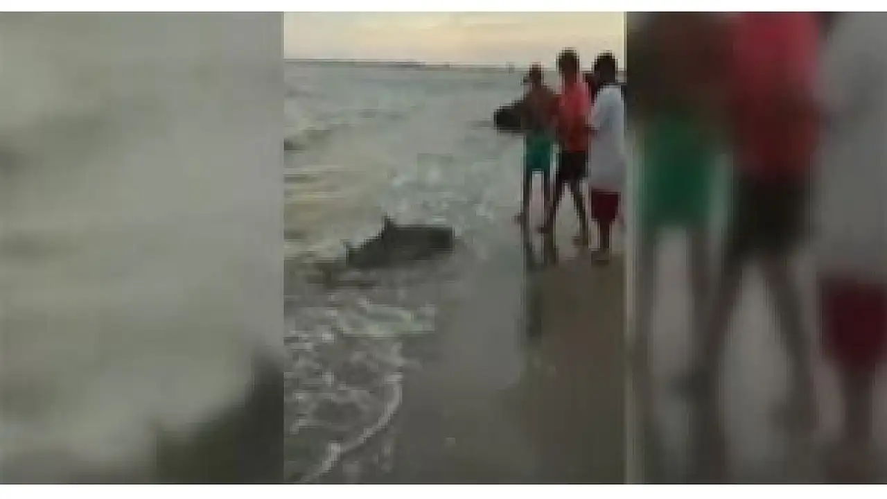 Görüntüler Amerika Birleşik Devletleri’nden. Sahilde balık tutmak isteyen bir grup genç, hiç de tahmin etmedikleri bir manzara ile karşılaştı. Onlarca kişinin denize girdiği yerde yakalanan hayvan, çevredekilerin meraklı bakışları altında kıyıya çekildi.