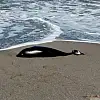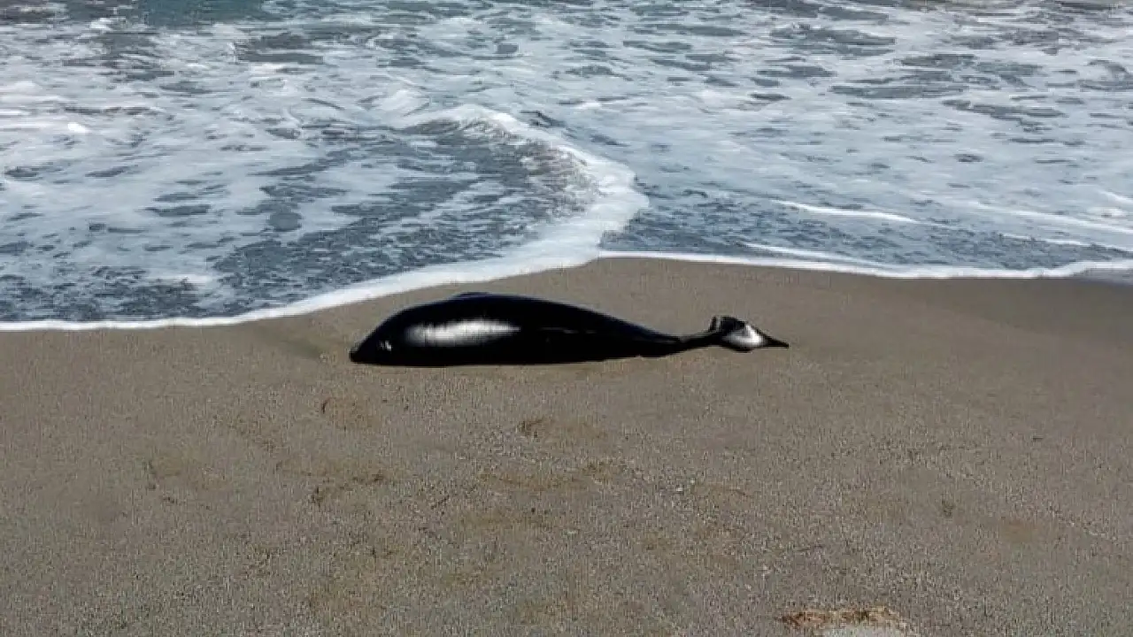 Samsun'un Bafra ilçesinde ölü yunus, sahilde karaya vurdu.