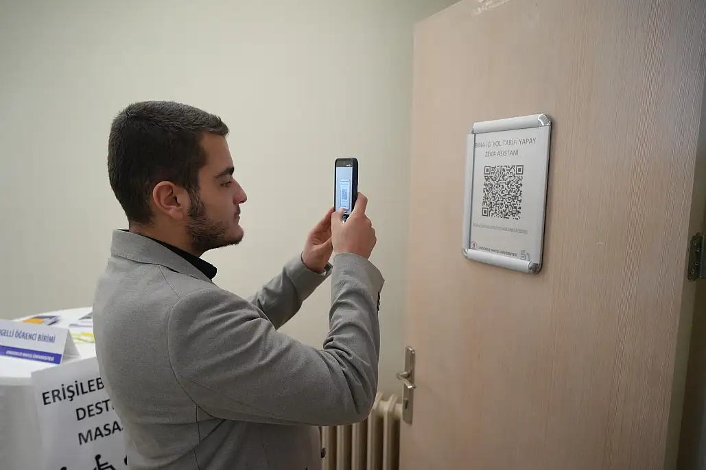 OMÜ Bilgi İşlem Daire Başkanı Doç. Dr. İsmail İşeri koordinatörlüğünde geliştirilen projede, kullanıcılar bina girişleri ve bina içindeki kritik noktalarda yer alan QR kodları cep telefonlarıyla okutarak konumlarını tanımlıyor. Gitmek istedikleri noktayı sesli olarak belirten öğrenciler, yapay zekâ destekli rehberlik sayesinde adım adım hedeflerine ulaştırılıyor.