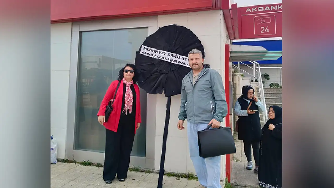 Hürriyet Sağlık-Sen yetkilileri, “Bugün Hürriyet Sağlık-Sen Samsun Şubesi olarak OMÜ’de 18.11.2025 günü yapılan maaş promosyon görüşmelerinde bankalar tarafından gerçeklikten ve günümüz ekonomik şartlarından uzak tekliflere, OMÜ çalışanları adına tepkimizi OMÜ’de bulunan banka şubelerinin önüne siyah çelenk koyarak protesto ettik. OMÜ çalışanları sahipsiz değildir. Çalışanın hakkını kararlılıkla savunmaya devam edeceğiz.” ifadelerini kullandı.