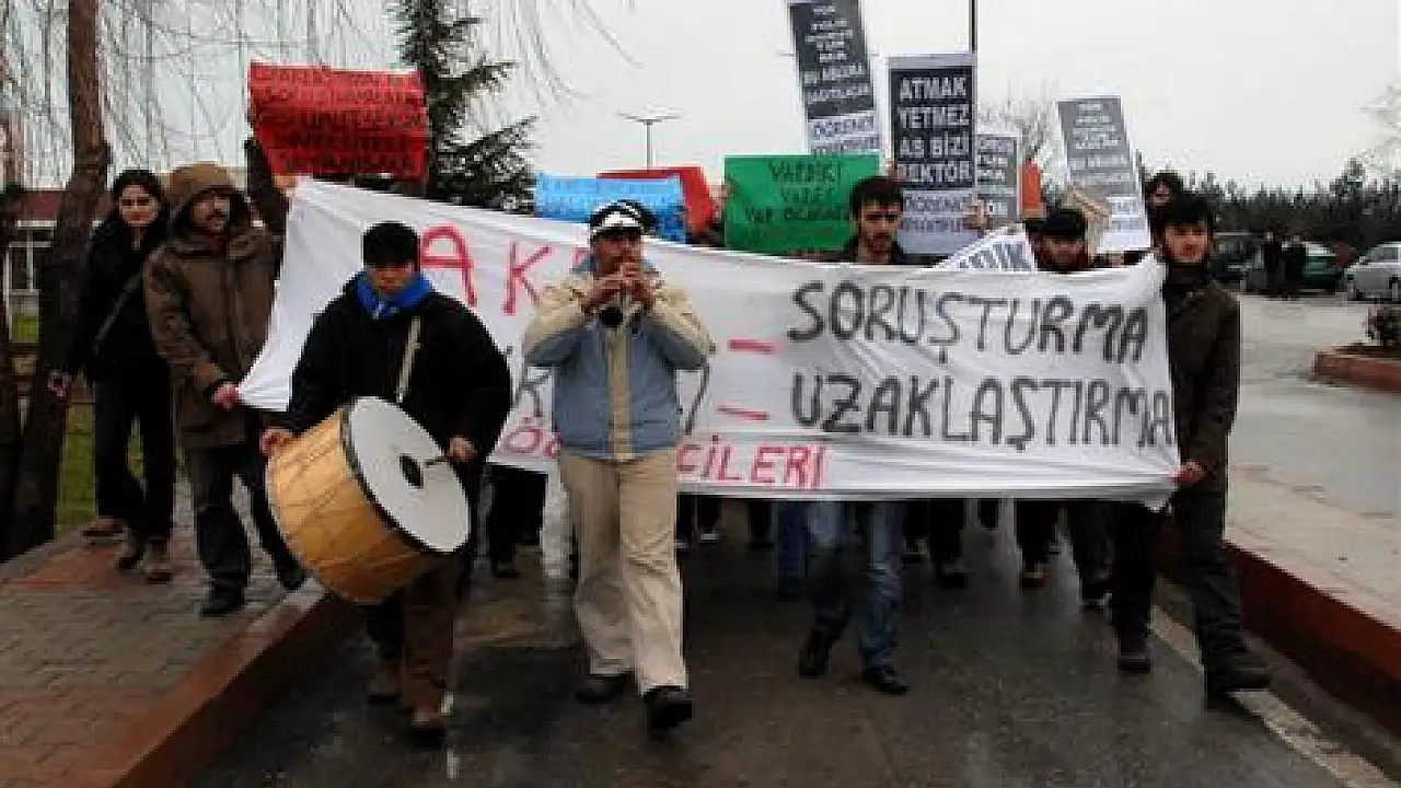 Öğrenciler adına açıklama yapan Dilek Altun, "En son 16 kişiye YÖK karşıtı eyleme katılmaktan soruşturma açıldı. 10 kişiye 2 dönem, 4 kişiye 1 dönem ve 2 kişiye 1 ay olmak üzere uzaklaştırmalar verildi. Haklı olduğumuz bu eylemle birlikte uzaklaştırmalar İdari Mahkeme'den geri döndü" dedi.