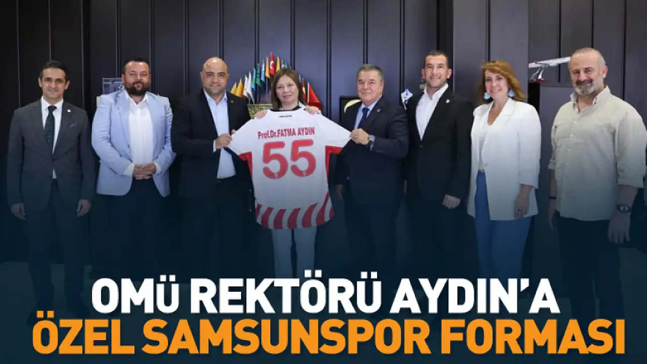 Samsunspor Asbaşkanı Veysel Bilen, Ondokuz Mayıs Üniversitesi Rektörü Prof. Dr. Fatma Aydın'a isminin yazılı olduğu 55 numaralı Samsunspor forması hediye etti.