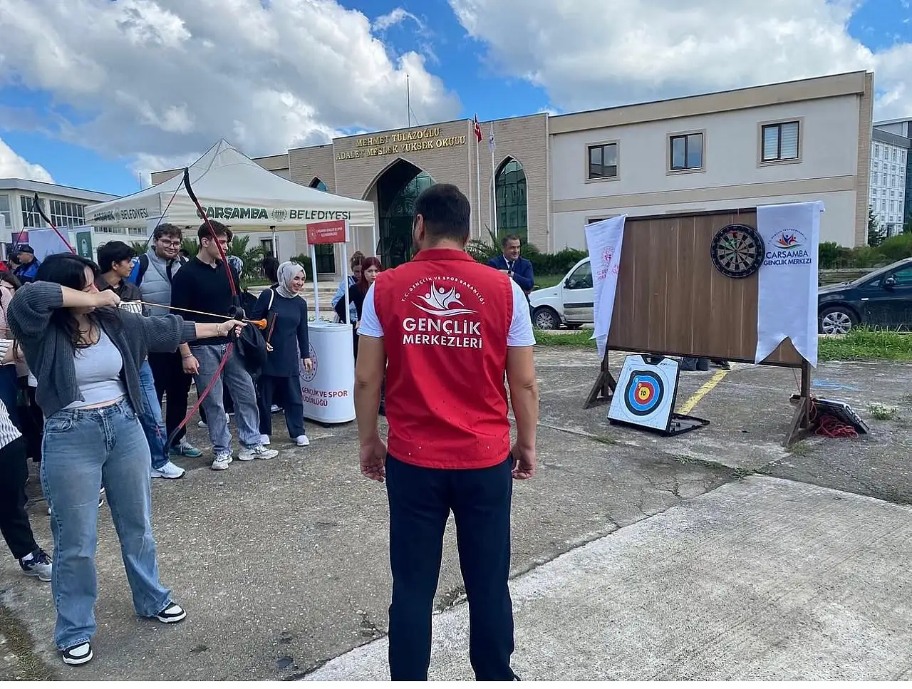 Kurulan bilgilendirici stantta ilçedeki sportif faaliyetler tanıtılırken öğrenciler için dart, okçuluk, badminton ve bilek güreşi branşlarında etkinlikler gerçekleştirildi.