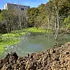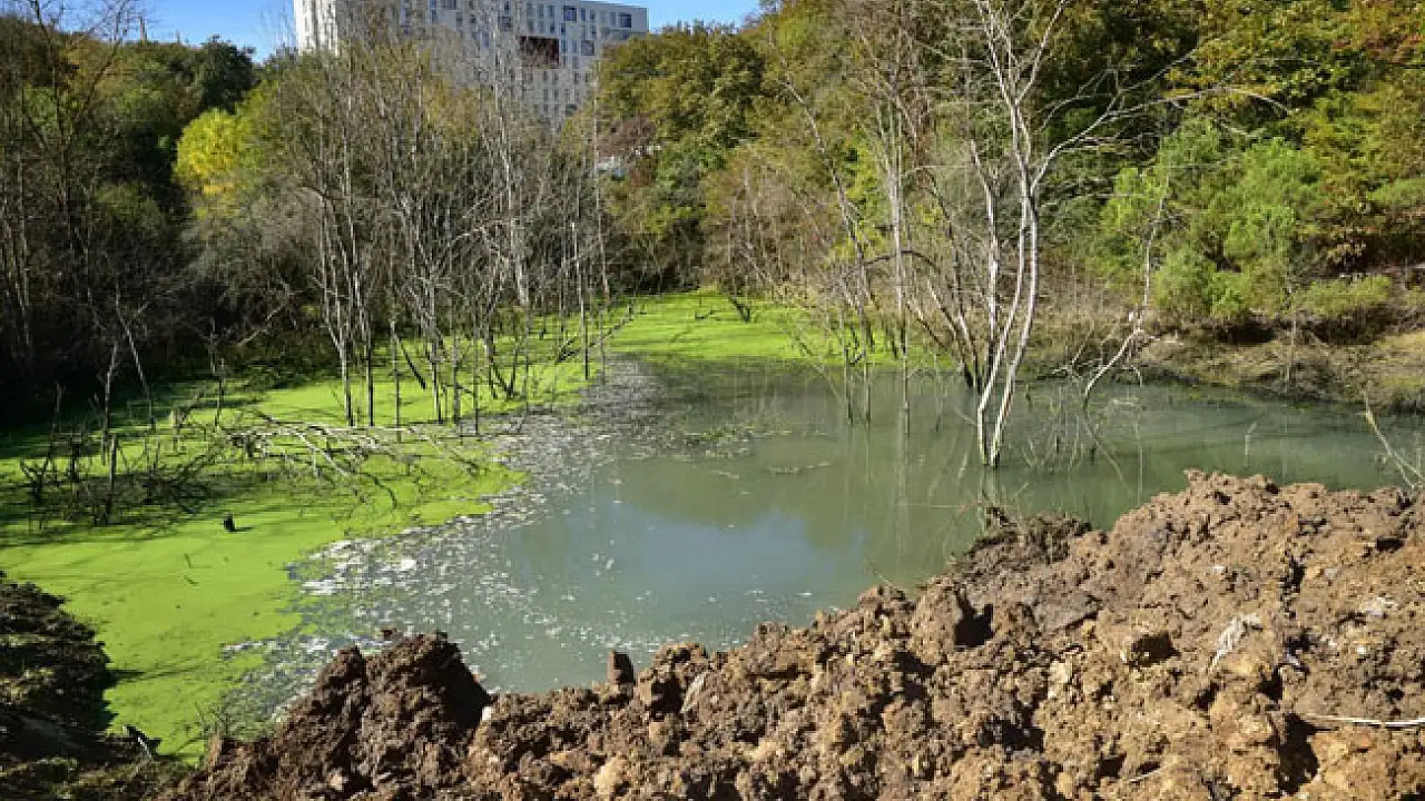 Ondokuz Mayıs Üniversitesi (OMÜ) Kurupelit Kampüsü'nde toprak kaymalarıyla oluşan göletin boşaltılarak ıslah edilmesi ve çevresinin mesire alanına dönüştürülmesi için çalışmalar başladı.