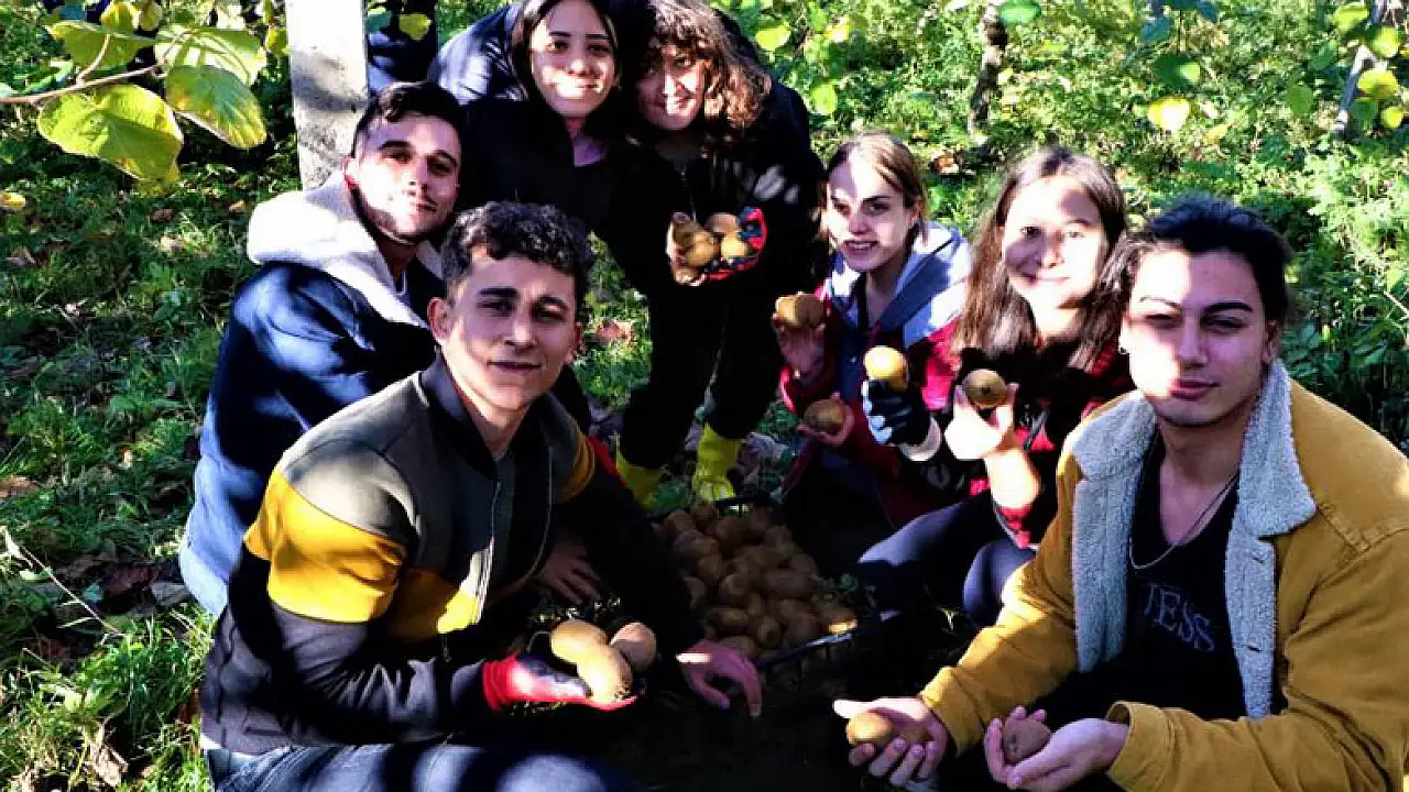 Ondokuz Mayıs Üniversitesi (OMÜ) Ziraat Fakültesi Bahçe Bitkileri Bölümü 2'nci sınıf öğrencileri, arazi uygulaması kapsamında kivi hasadı gerçekleştirdi.