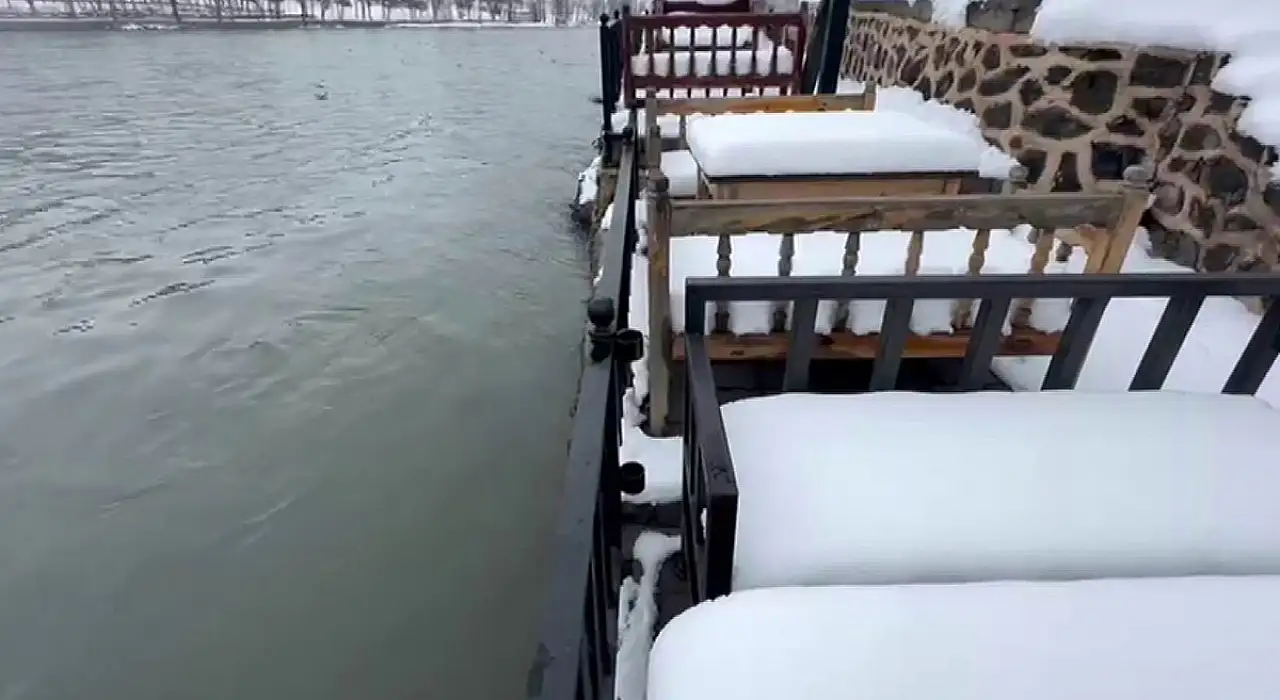 Doğal yaşamın sessizce canlandığı bölgede Karabaş martılarının nehir üzerinde süzülmesi, kış manzarasına ayrı bir güzellik kattı.