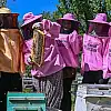 Van'ın Gevaş ilçesinde kooperatif kuran pembe kıyafetli arıcı kadınlar, katıldıkları eğitim programlarında edindikleri bilgilerle bal üretimi ve arıcılıkta söz sahibi olmayı hedefliyor