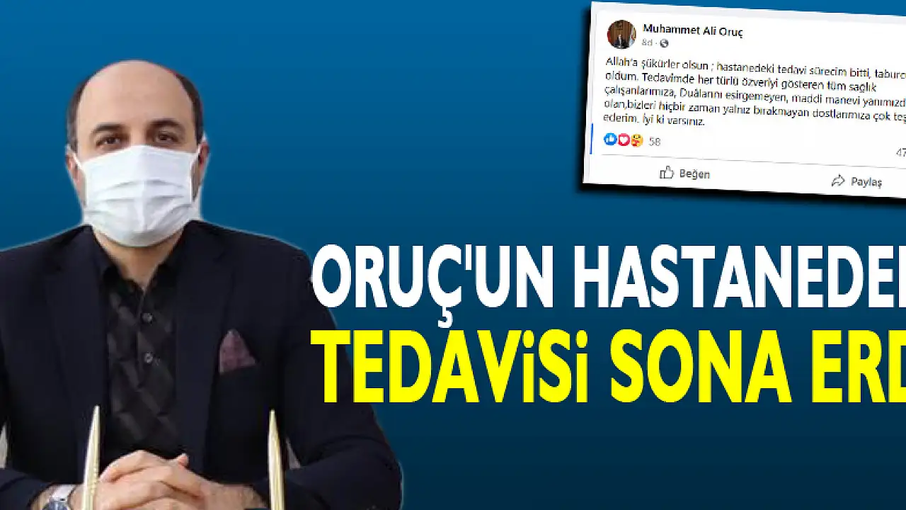 Samsun İl Sağlık Müdürü Muhammet Ali Oruç sosyal medya hesabından yaptığı açıklamasında "Allah’a şükürler olsun ; hastanedeki tedavi sürecim bitti, taburcu oldum. Tedavimde her türlü özveriyi gösteren tüm sağlık çalışanlarımıza, Dualarını esirgemeyen, maddi manevi yanımızda olan,bizleri hiçbir zaman yalnız bırakmayan dostlarımıza çok teşekkür ederim. İyi ki varsınız." şeklinde ifade etti